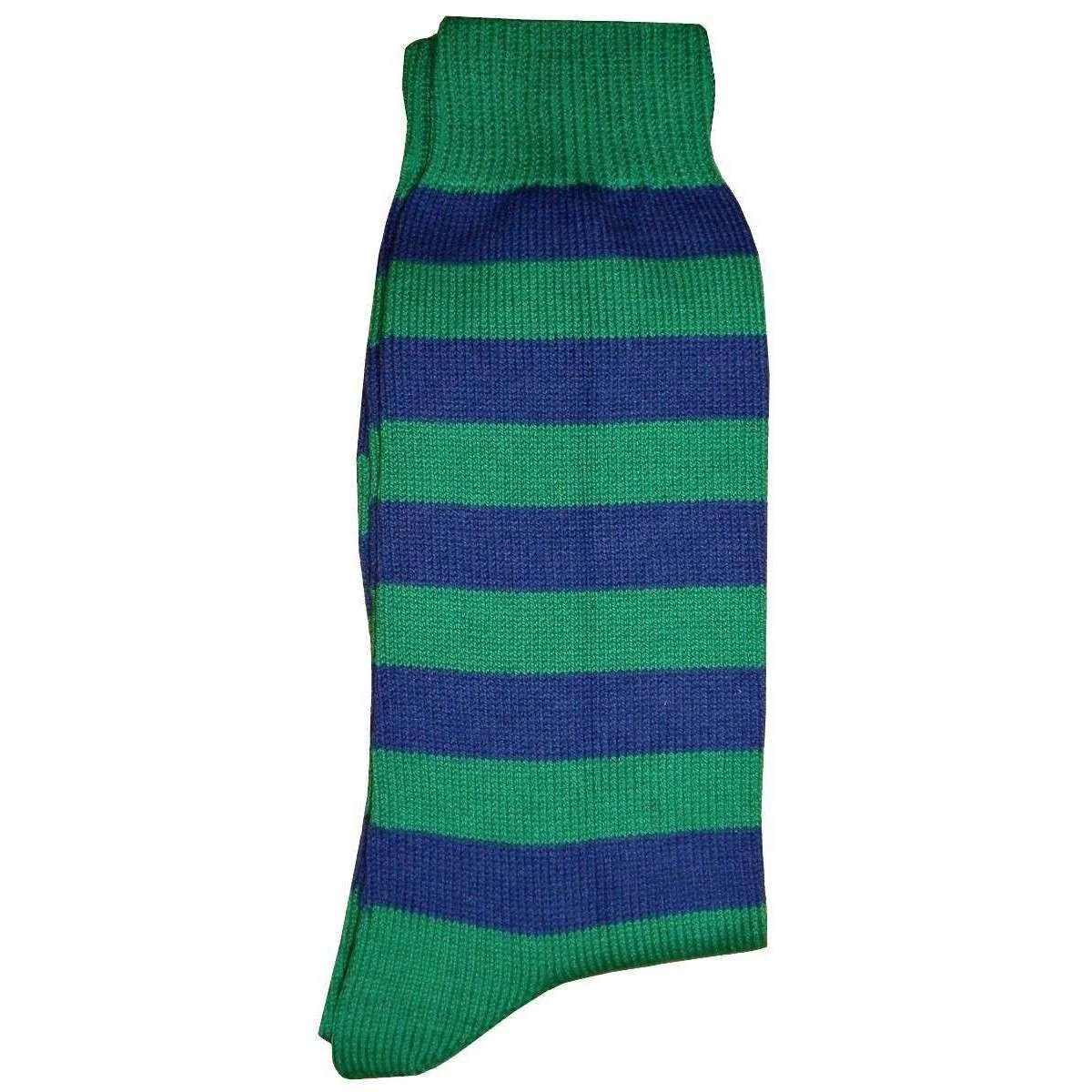 Brought to you by the brand Bassin and Brown, these green/royal blue men’s hooped stripe socks are made from 80% cotton and 20% acrylic. Also the green/royal blue socks are designed in a striped pattern, Bassin and Brown have made these hooped stripe socks in Britain. It is recommended to wash at 30 degrees to keep these socks in good condition. All the socks come complete with bassin and brown sock tags. The Bassin and Brown Hooped Stripe Socks – Green/Royal Blue are fashionable and extremely comfortable. With their hooped striped design, you can create your own fashion statement. Made with high-quality cotton for your wearing comfort. These socks also feature reinforced stress zones for durability, making them the perfect socks for everyday wear.