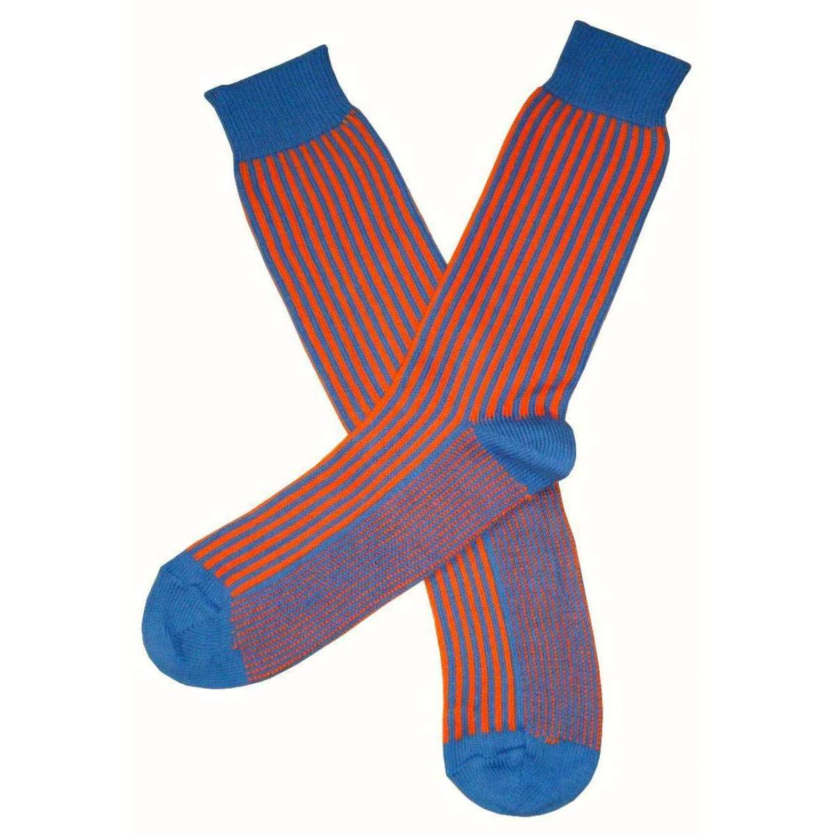 These vertical stripe midcalf socks for men are fashioned by the brand Bassin and Brown in a blue colour and are made from 80% cotton and 20% acrylic. Also the blue/orange socks are designed in a striped pattern, Bassin and Brown have made these vertical stripe midcalf socks in Britain. It is recommended to machine wash at 30 degrees to keep these socks in good condition. All the socks come complete with bassin and brown tags. The Bassin and Brown Vertical Stripe Midcalf Socks – Blue/Orange have a fun yet simple design that would spice up any gentlemans attire. These socks feature reinforced stress zones and a ribbed cuff so you will be guaranteed to be comfortable from day to night.