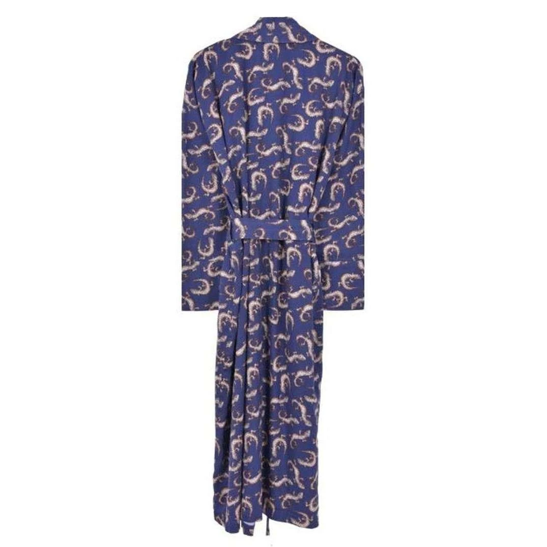 This men’s gekko lightweight dressing gown by the brand Bown of London is made from 100% cotton satin fabric and is showcased in navy. Also the navy dressing gown is designed in a unique pattern, It is recommended to wash at 40 degrees to keep this dressing gown in good condition. All the dressing gowns come complete with bown of london packaging. The Bown of London Gekko Lightweight Dressing Gown – Navy is an elegant gown which is the perfect fashion staple for the warmer months. This gorgeous piece has been designed in an alluring blue with a Gekko print and contrast piping on the cuffs, perfect for making a statement. Crafted from naturally soft, luxurious cotton, this stylish men’s lightweight robe is guaranteed to make you feel like an emperor. Luxury is key with this design so your sure to be able to lounge in complete comfort.
