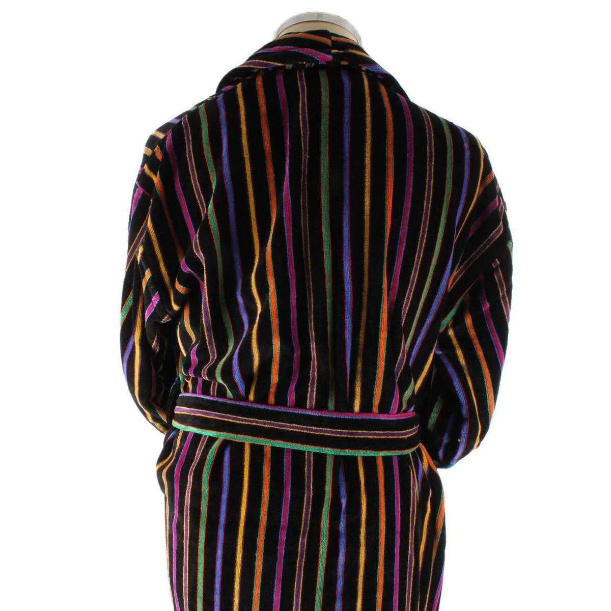 Bown of Londons Mozart dressing gown is sure to be a stylish piece of clothing that will keep you cosy during those colder winter months. Beautifully designed, this robe features a colourful striped design which will certainly stand out; ideal for that stylish gentleman. Having been luxuriously crafted from 100% of cotton velour you can be more than certain that you are provided with a robe which will keep you comfortable and snug throughout the duration of the wear. Tied with a waist rope and featuring two slip-in pockets either side this gown is perfect for lounging about the house in. Sitting at 125cm in length and coming complete with Bown of London tags, this plush dressing gown would make a thoughtful gift.