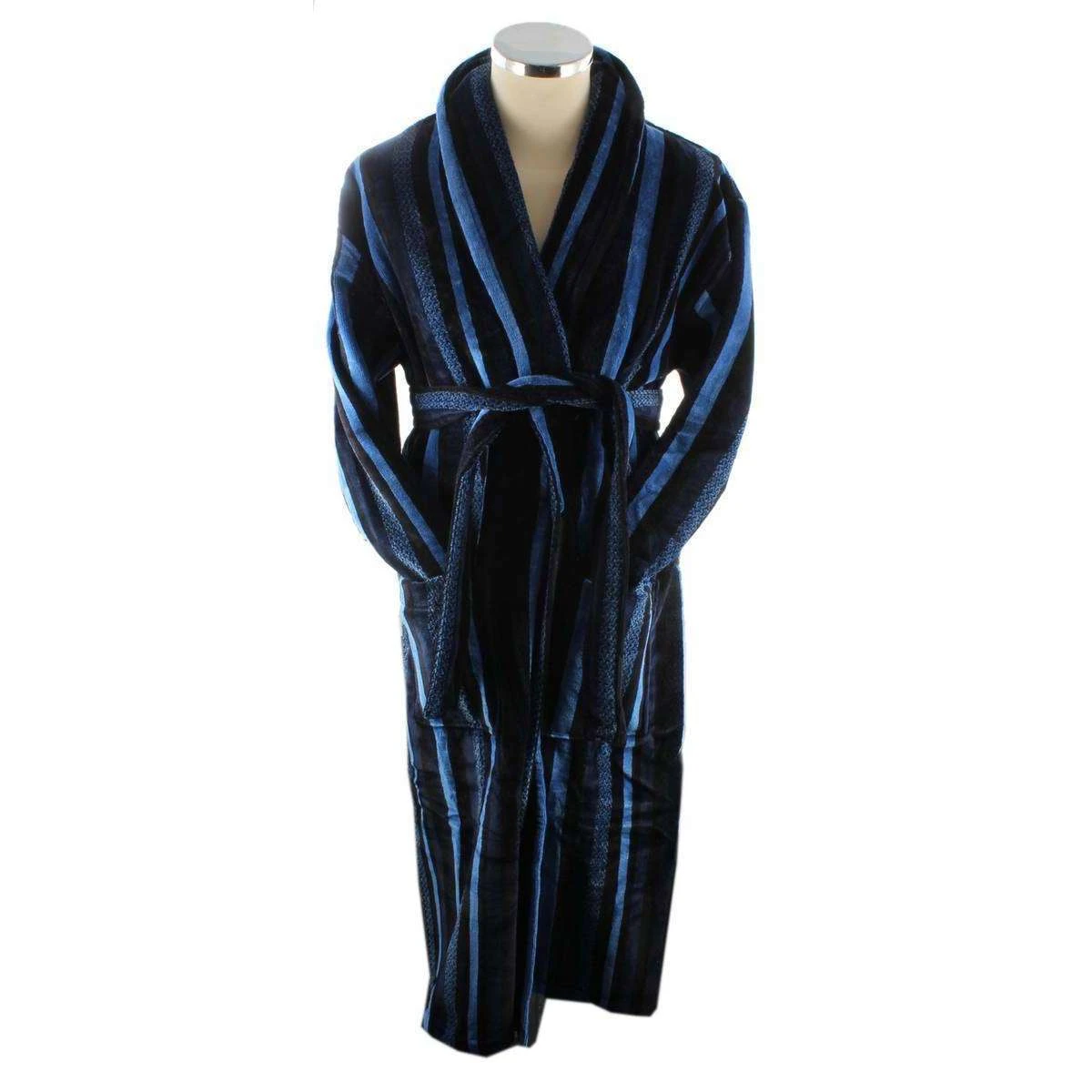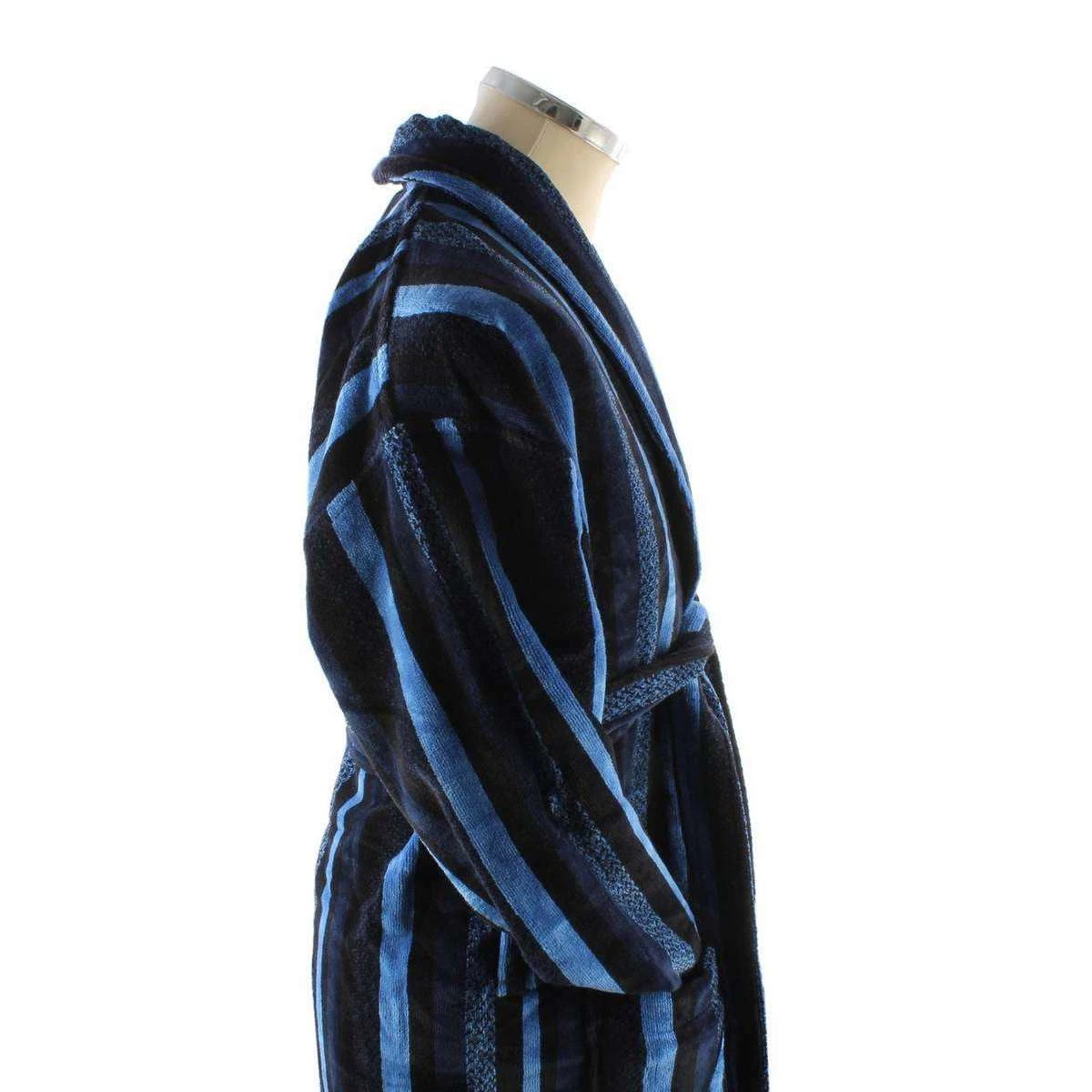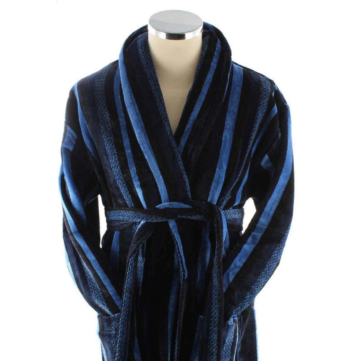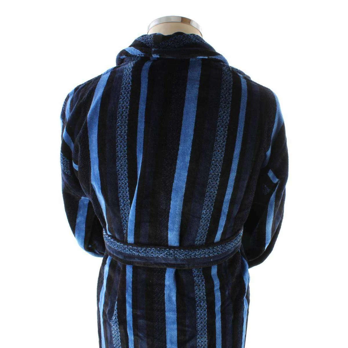 This men’s salcombe egyptian cotton velour dressing gown by the brand Bown of London is made from 380gsm egyptian cotton and is showcased in blue. It measures 125cm(length). Also the blue/navy dressing gown is designed in a striped pattern, It is recommended to wash at 40 degrees on a cotton cycle to keep this dressing gown in good condition. All the dressing gowns come complete with bown of london tags. The Bown of London Salcombe Egyptian Cotton Velour Dressing Gown – Blue/Navy features an eye catching vertical striped design that is guaranteed to impress. It has been crafted to the finest quality to ensure luxurious comfort making it a must have for your loungewear collection. A double cuff also ensure a perfect sleeve fit. The two front pockets are practical and it secures with a waist tie.