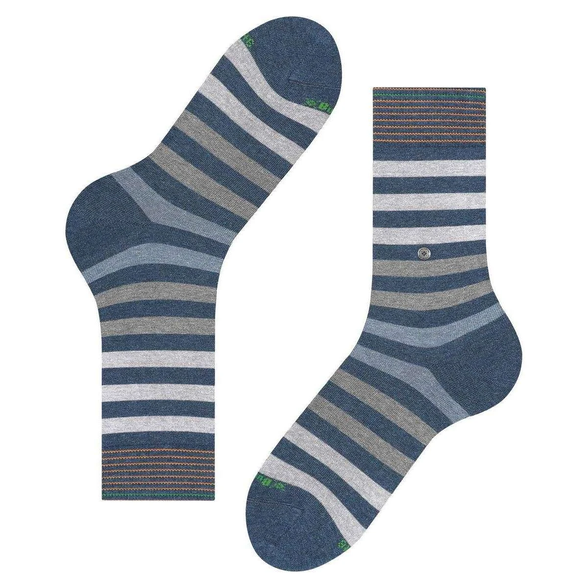 These men’s blackpool socks have been made from 80% cotton (organic), 18% polyamide and 2% elastane, featured in a blue colour and are from the brand Burlington. Also the dark blue mel socks are designed in a striped pattern, It is recommended to wash at 40 degrees to keep these socks in good condition. All the socks come complete with burlington sock tags. The Burlington Blackpool Socks – Dark Blue Mel feature block stripes that are complemented with a colourful contrasting cuff that is stylish and extremely comfortable to wear. Made from sustainable yams and combed cotton, these fine gents socks are versatile for any occasion. Both the Burlington logo on the toe and the Burlington clip finish off these socks, bringing a boost to any and all wardrobe choices.