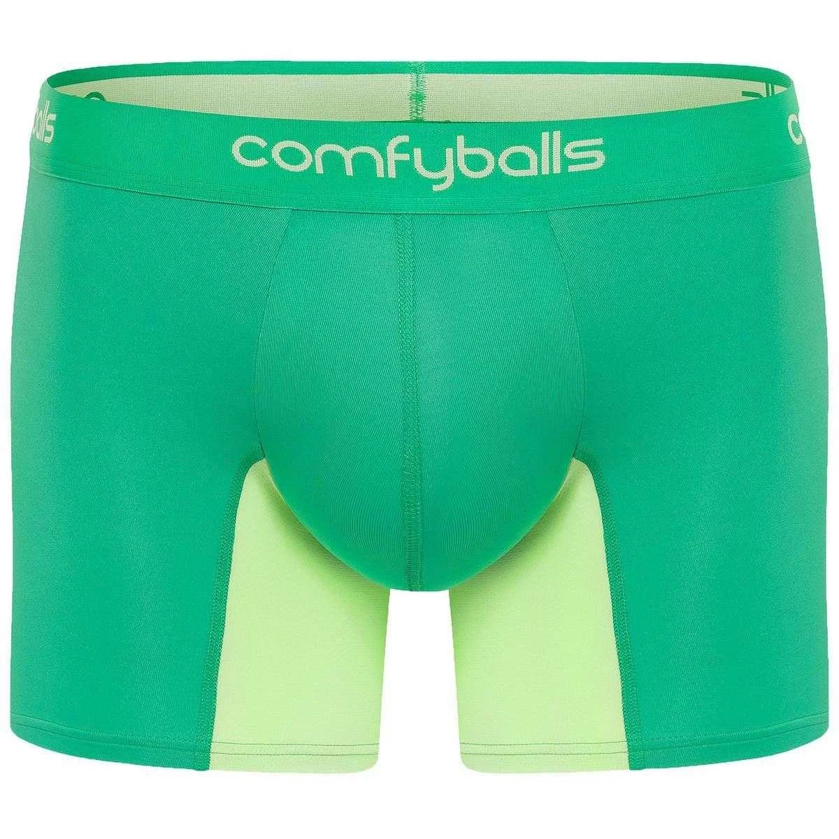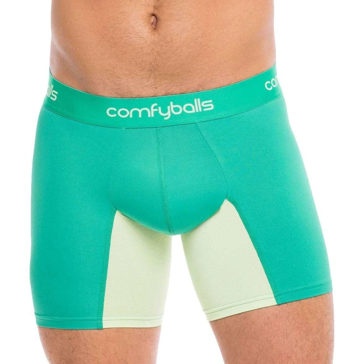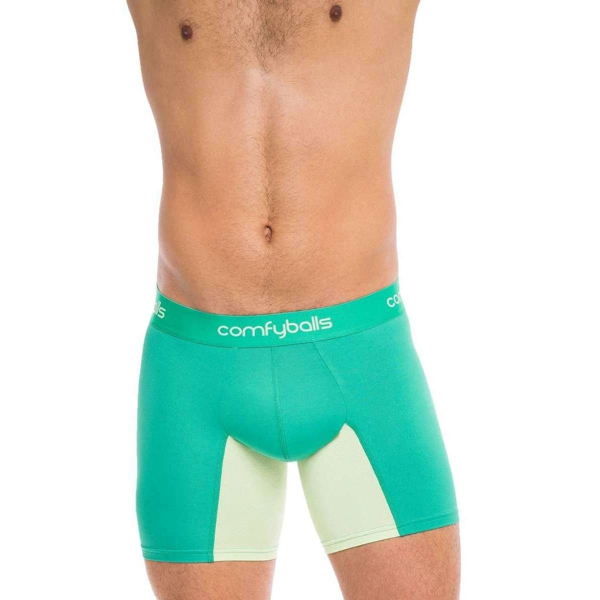 This men’s performance hybrid long boxer has been made from 84% polyester and 16% lycra, featured in a green colour and is from the brand Comfyballs. Also the apple green underwear is designed in a plain pattern, It is recommended to wash at 40 degrees to keep this underwear in good condition. All the underwear comes complete with comfyballs packaging. The Comfyballs Performance Hybrid Long Boxer – Apple Green is the perfect piece of underwear for any intense sports as it features a superlight mesh structure in the hot zones. Being soft, extremely light and durable with many properties including fast drying and sweat wicking you could not find a more perfect piece for your collection. Also features the PackageFront™ technology which keeps your manhood away from your inner thighs preventing chaffing.
