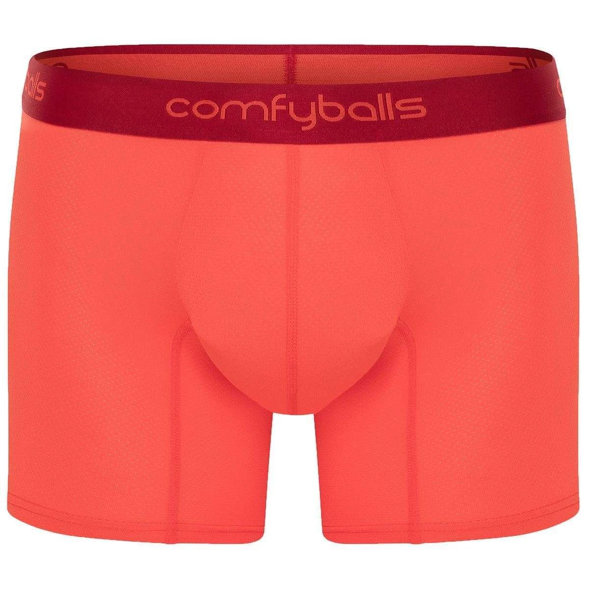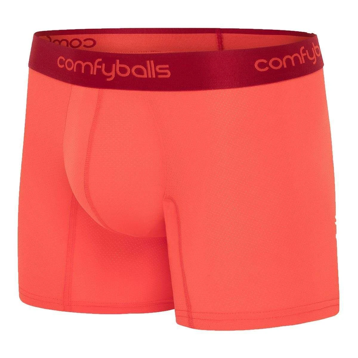 Perfect for men is this Comfyballs plasma red performance superlight long boxer, it is also made from 84% polyester and 16% lycra. Also the plasma red underwear is designed in a plain pattern, All the underwear comes complete with comfyballs packaging. The Comfyballs Performance Superlight Long Boxer – Plasma Red will be sweat wicking and is best suited for all kinds of sporting activities and everyday use. It is super soft, moisture wicking, extremely light and durable, ideal for keeping you comfortable at all times. Fast drying ensures moisture will transport away from the skin allowing the fabric to dry quicker. The package front technology is designed to keep your equipment in place and comfortable while being lifted away from your thighs so needing to re-adjust is a thing of the past.
