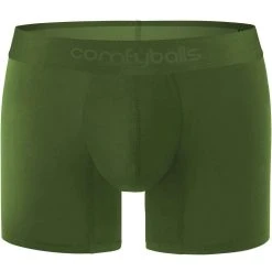 This men’s wood long boxer has been made from 45% tencel modal, 45% cotton and 10% lycra, featured in a green colour and is from the brand Comfyballs. Also the olive green underwear is designed in a plain pattern, All the underwear comes complete in comfyballs packaging. The Comfyballs Wood Long Boxer – Olive Green is crafted from organic, natural products that are unbelievably soft and comfortable. It features the Comfyballs package front that is stretchy and prevents the need for readjustment as well reducing heat. It has been finished with Comfyballs branding on the waistband.