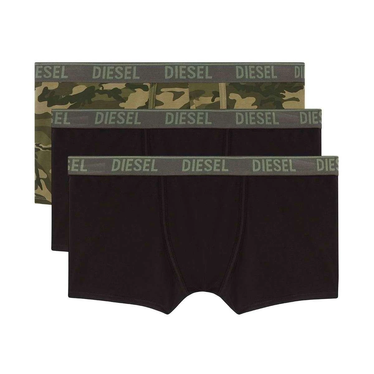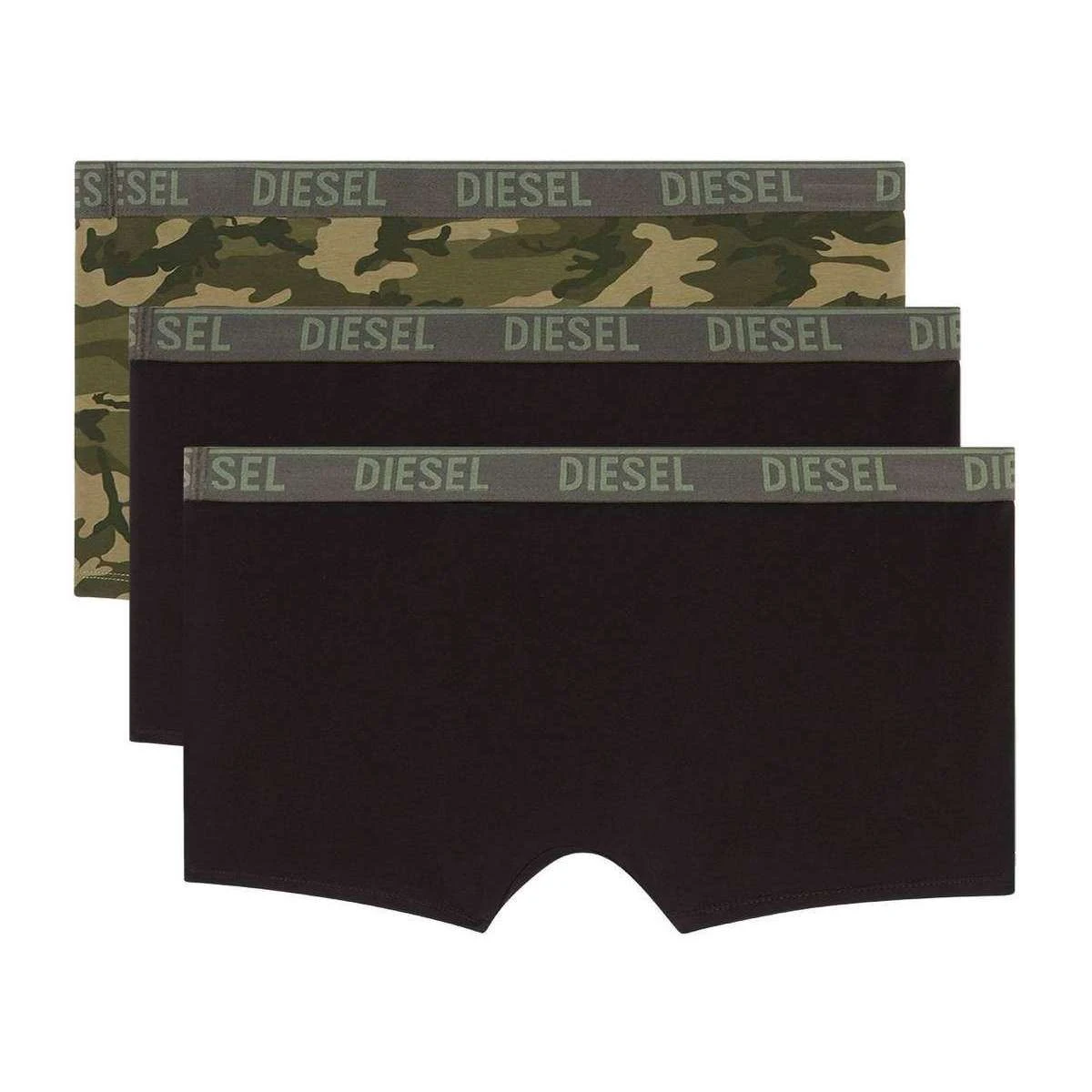 This men’s damien 3 pack trunks by the brand Diesel is made from 95% cotton and 5% elastane-spandex and is showcased in black. Also the black/camo green underwear is designed in a camouflage pattern, It is recommended to wash at 30 degrees on a delicate cycle, do not bleach, do not tumble dry, do not dry clean to keep this underwear in good condition. 3 pack underwear is value for money ensuring they are a good buy, All the underwear comes complete with diesel presentation box. The Diesel Damien 3 Pack Trunks – Black/Camo Green are made using the softest of stretch cotton to ensure the upmost of comfort. Featuring an elasticated waistband with all-over Diesel branding these pack of 3 (containing two plain pairs and one camo-print design) trunks will be a great addition to your underwear collection.
