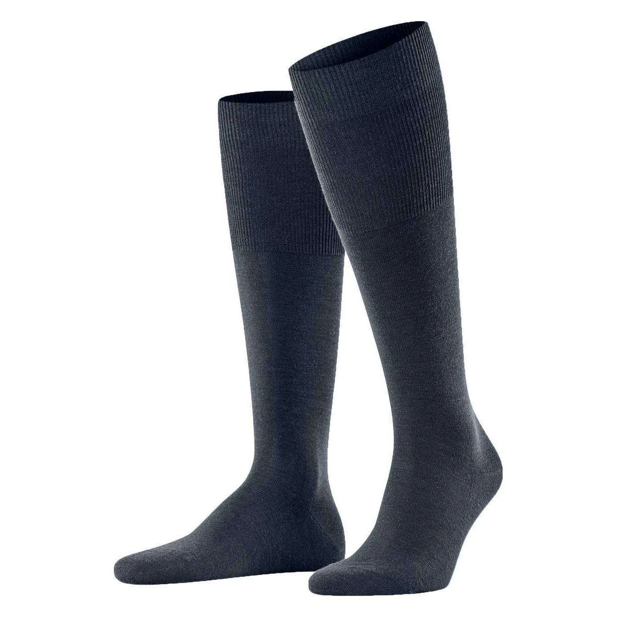These men’s airport knee-high socks have been made from 60% virgin wool, 23% cotton, 15% polyamide and 2% elastane, featured in a blue colour and are from the brand Falke. Also the space blue socks are designed in a plain pattern, Falke have made these airport knee-high socks in Germany. It is recommended to wash at 30 degrees to keep these socks in good condition. All the socks come complete with falke sock tags. The Falke Airport Knee-High Socks – Space Blue will guarantee excellent temperature regulation and unbeatable comfort. Whether for work or leisure these socks are great for all occasions and the reinforced stress zones and the extra flat toe seams contribute to the outstanding comfort on the socks. These socks are durable, light and have extended cuffs for wrinkle free fit on the leg. The pleasantly soft cotton on the inside of the sock and the climate regulating wool on the outside make for a perfect purchase and will not disappoint.