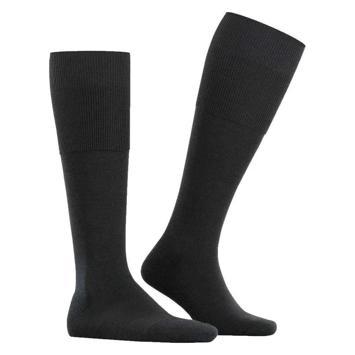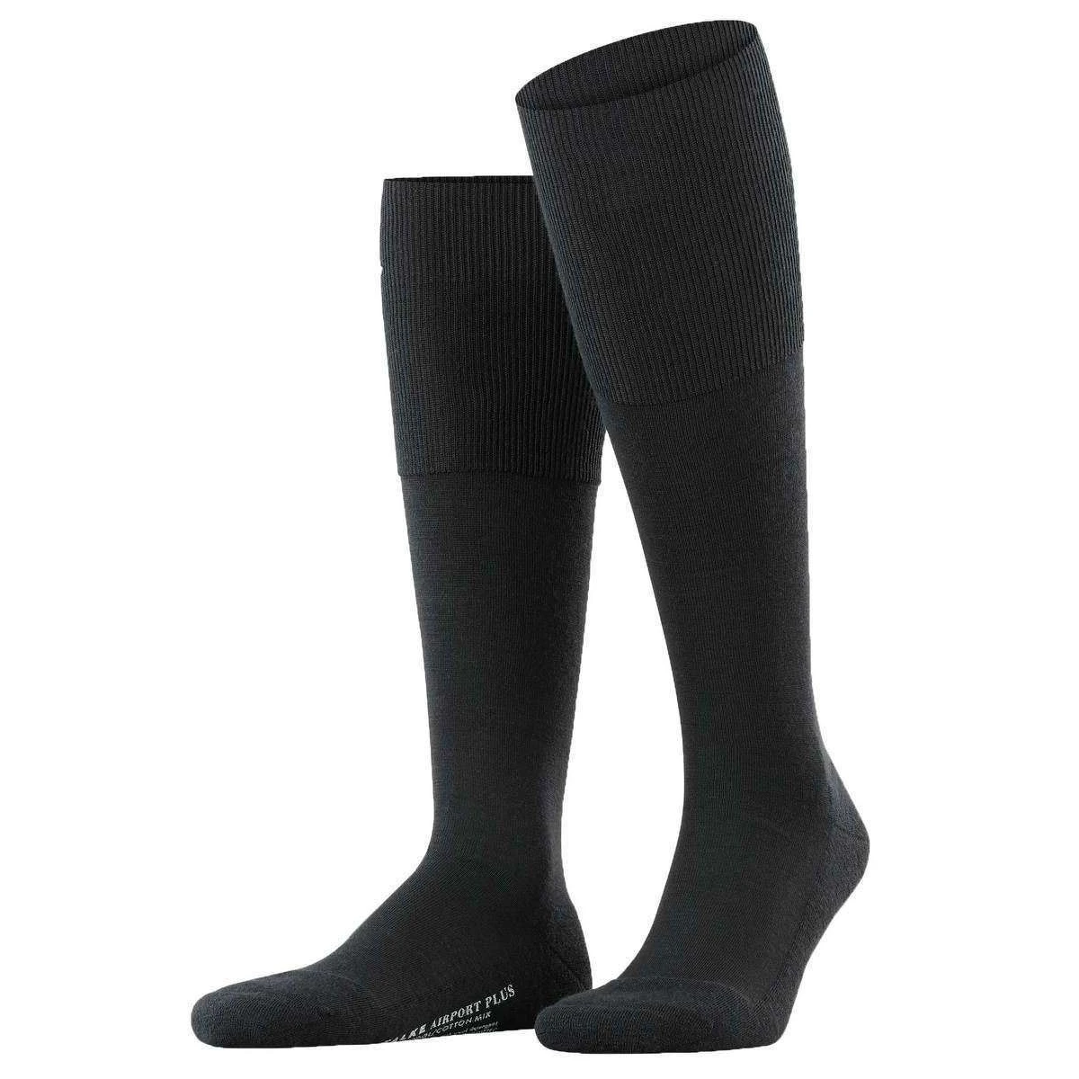 Introducing these men’s airport plus knee-high socks by Falke, they are manufactured from 53% virgin wool, 27% cotton and 20% polyamide in a black colour. Also the black socks are designed in a plain pattern, Falke have made these airport plus knee-high socks in Germany. It is recommended to wash at 30 degrees to keep these socks in good condition. All the socks come complete with falke packaging. The Falke Airport Plus Knee-High Socks – Black will be light and are climate regulating due to the merino wool on the outside of the socks. These socks are also skin friendly due to the cotton on the inside. Reinforced impact zones and a flat toe seam contribute to the superbly comfortable wearing feeling as well as pressure free toes. Included are extended cuffs for wrinkle free fit on the leg and cushioned sole padding. These Knee high socks would make a great purchase.