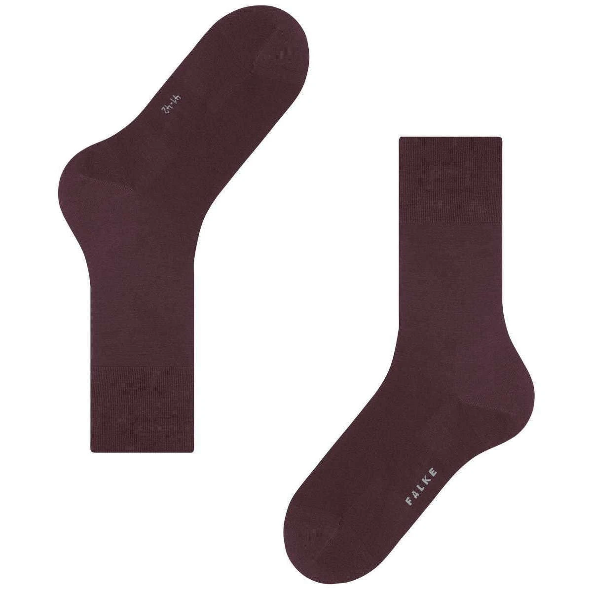 socks using burgundy tones. Also the burgundy socks are designed in a plain pattern, It is recommended to wash at 30 degrees to keep these socks in good condition. All the socks come complete with falke sock tags. The Falke Climawool Socks – Burgundy give comfort, quality and durability. The perfect blend of Merino wool and TENCEL ™ Lyocell ensure a pleasantly light and soft feel on your feet. The FALKE ClimaWool also scores in terms of sustainability: TENCEL™ is a biodegradable fibre that is obtained from sustainably grown, FSC-certified eucalyptus wood. These socks deliver a secure fit, while the temperature-regulating, moisture-regulating and odour-neutralising materials, keep your feet dry and cool. The Beta Spun technology ensures a durability that you can count on. With the Falke Perfect Fit and being part of the FALKE-WE-CARE range, these socks are the perfect addition to your wardrobe.