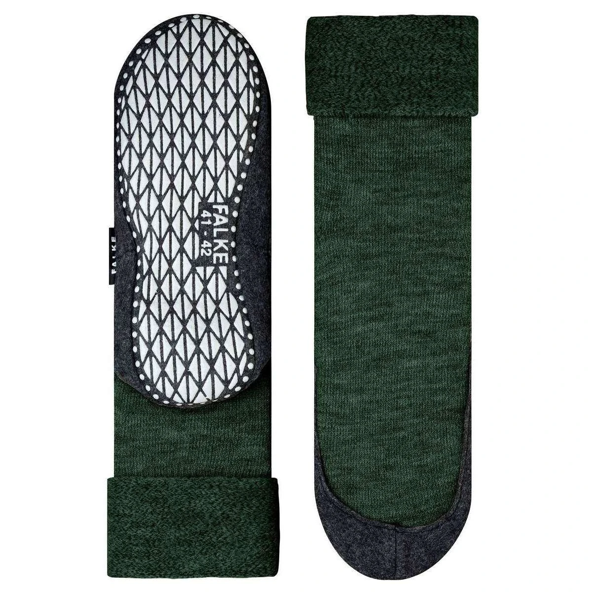 These men’s cosyshoe slipper socks by the brand Falke are made from 90% virgin wool and 10% polyamide and are showcased in green. Also the green mel socks are designed in a plain pattern, It is recommended to wash at 30 degrees to keep these socks in good condition. All the socks come complete with falke sock tags. The Falke Cosyshoe Slipper Socks – Green Mel keep your feet cosy and warm with its soft full plush inside. Made specifically to ensure your comfort with light warming merino wool, these slippers have printed nubs on the sole for improve grip. With the comfortable fold-over cuffs and elastic zone in the ankle area for optimum fit, your feet stay comfortable, cosy and warm all day! A Falke Perfect Fit, and trendy colours, you stay in fashion whether you are out or cosying up at home! Please note: This product tends to be one size smaller.