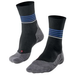 These men’s ru4 endurance reflect socks by the brand Falke are made from 38% polypropylene, 35% cotton, 25% polyamide, 1% polyurethane and 1% elastane and are showcased in black. Also the black socks are designed in a striped pattern, It is recommended to wash at 30 degrees to keep these socks in good condition. All the socks come complete with falke sock tags. The Falke RU4 Endurance Reflect Socks – Black provide medium cushioning for balanced protection and great shoe contact. With ultra-fast moisture cotton mix and moisture wicking 3-layer construction, these light running socks keep your feet dry and blister free. The reflective design details, provide enhanced visibility in low light conditions. These socks are complete with optimal fit with toe and sole area adapted to each foot.