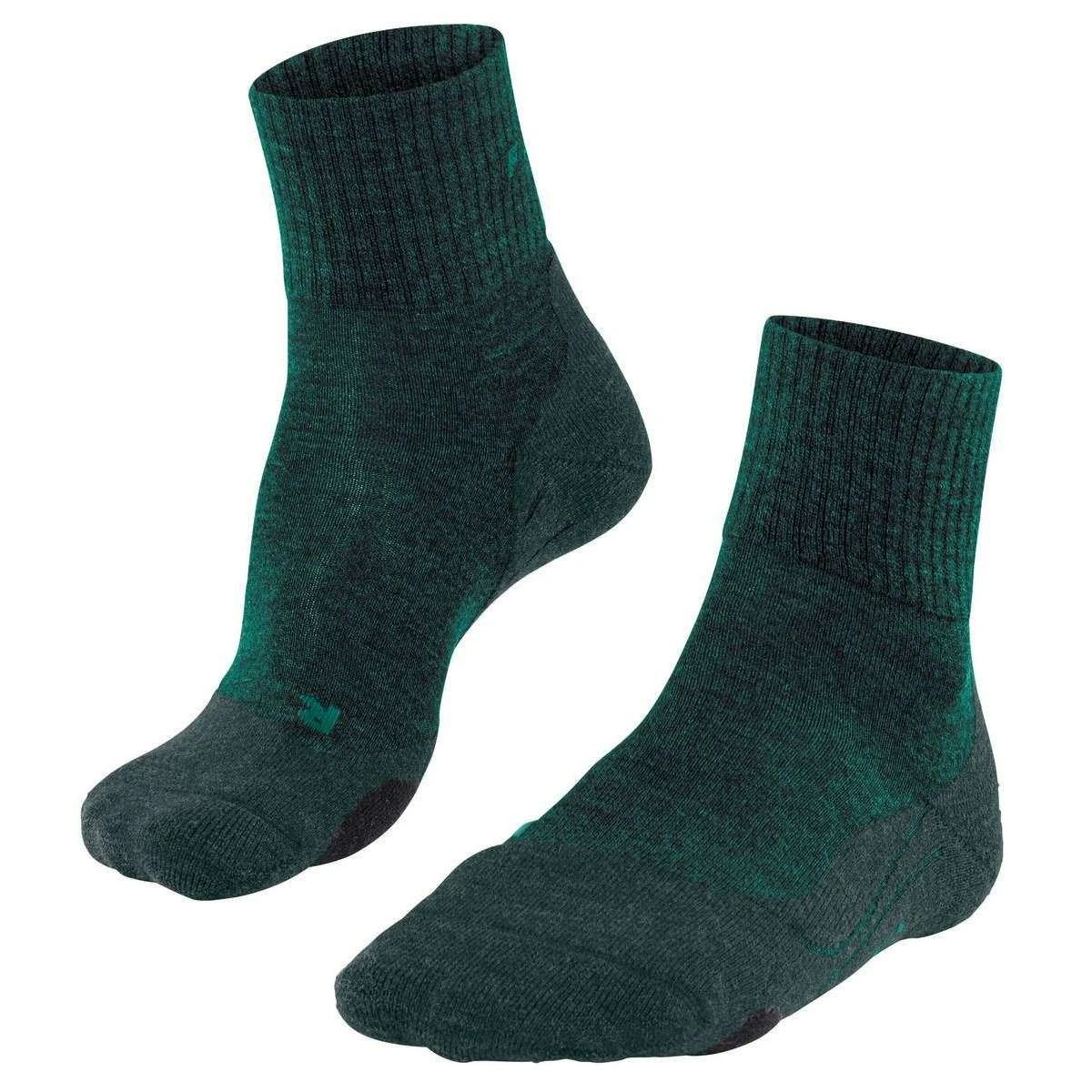 These men’s tk2 explore wool short socks by the brand Falke are made from 73% virgin wool and 27% polyamide and are showcased in green. Also the holly green socks are designed in a plain pattern, It is recommended to wash at 30 degrees to keep these socks in good condition. All the socks come complete with falke sock tags. The Falke TK2 Explore Wool Short Socks – Holly Green offer medium cushioning and extra high merino wool content for stress zone protection wearing comfort. These hiking socks have a rapid moisture wicking 3-layer construction and thermal insulation to keep your feet dry and blister free. With 70% thermoregulating Merino wool mix with odour resistant qualities, you can wear these socks for longer fun in the outdoors. Complete with optimal fit with toe and sole area adapted to each foot.
