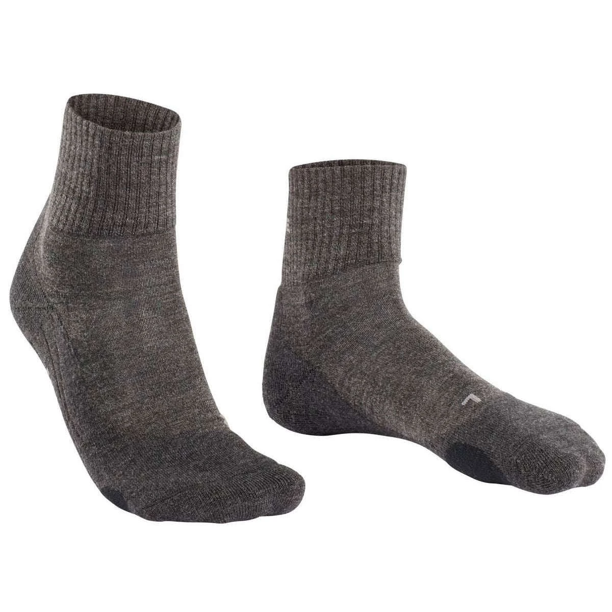 These men’s tk2 explore wool short socks by the brand Falke are made from 73% virgin wool and 27% polyamide and are showcased in grey. Also the smog grey socks are designed in a plain pattern, It is recommended to wash at 30 degrees to keep these socks in good condition. All the socks come complete with falke sock tags. The Falke TK2 Explore Wool Short Socks – Smog Grey offer medium cushioning and extra high merino wool content for stress zone protection wearing comfort. These hiking socks have a rapid moisture wicking 3-layer construction and thermal insulation to keep your feet dry and blister free. With 70% thermoregulating Merino wool mix with odour resistant qualities, you can wear these socks for longer fun in the outdoors. Complete with optimal fit with toe and sole area adapted to each foot.