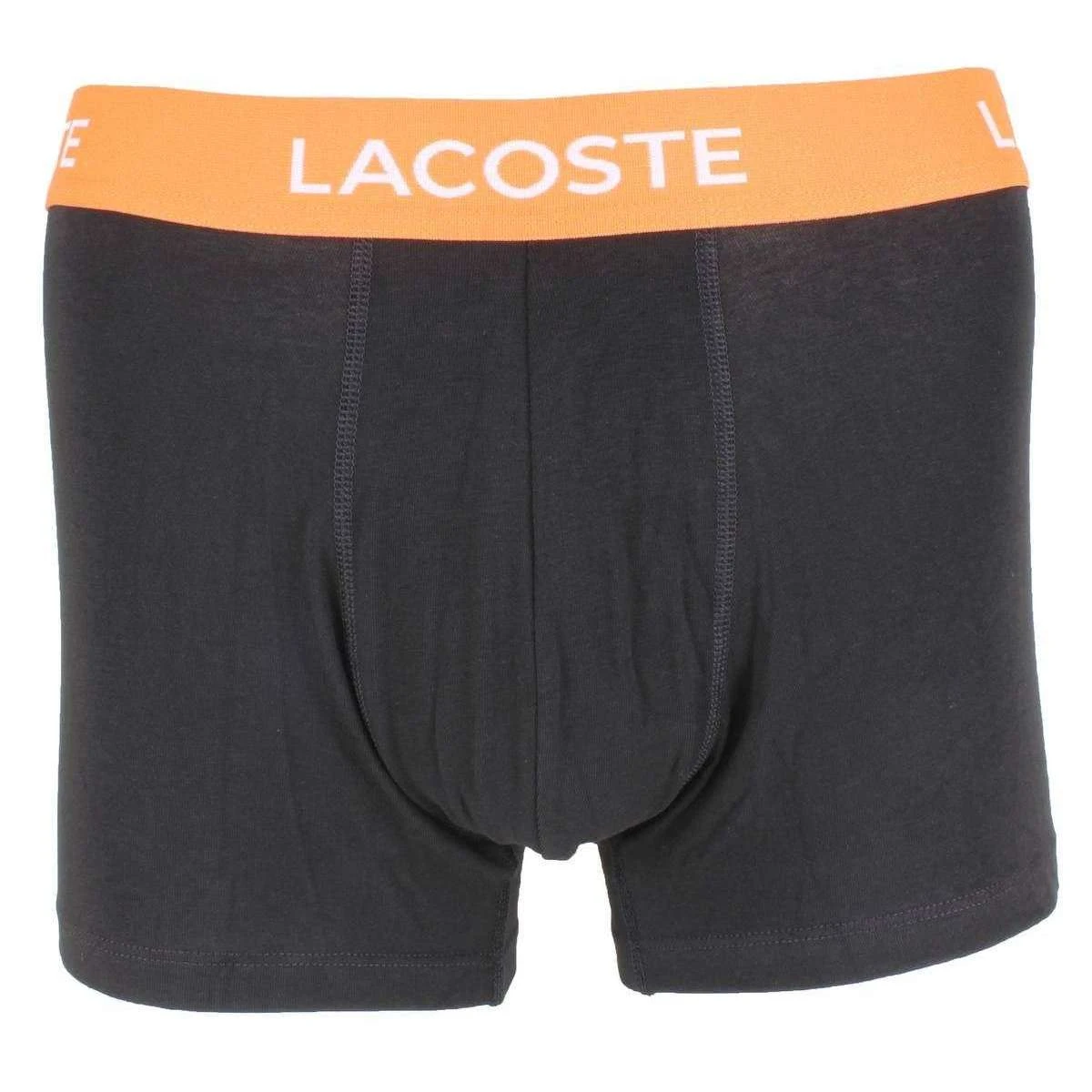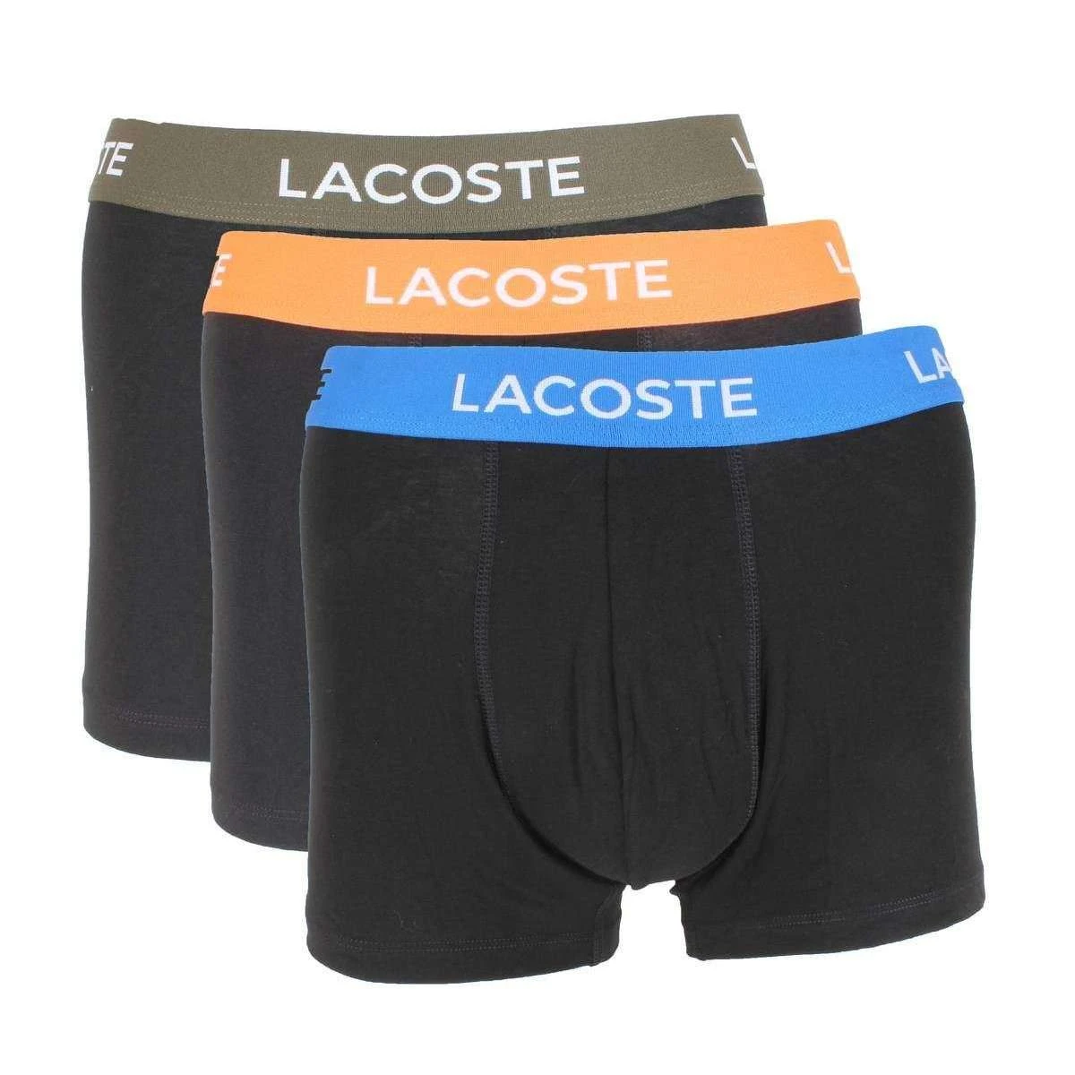 Introducing this men’s casual contrasting waistband 3 pack trunks by Lacoste, it is manufactured from 95% cotton and 5% elastane in a black/celosia/marine colour. Also the black/celosia/marine underwear is designed in a plain pattern, It is recommended to wash at 30 degrees to keep this underwear in good condition. 3 pack underwear is value for money ensuring they are a good buy, All the underwear comes complete with a lacoste presentation box. The Lacoste Casual Contrasting Waistband 3 Pack Trunks – Black/Celosia/Marine are everyday essentials that provide unmatched comfort throughout the day. The elasticated waistband allows freedom of movement and breathability allowing them to keep you fresh. These trunks feature a contrasting waistband with the Lacoste name printed onto it.