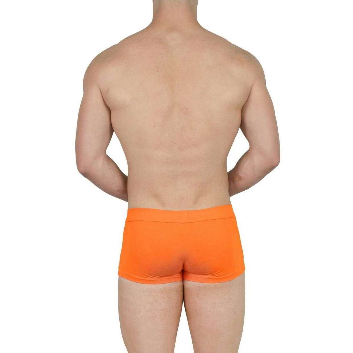 This men’s eliteman trunk has been made from 90% micro modal and 10% lycra spandex, featured in a orange colour and is from the brand Obviously. Also the orange underwear is designed in a plain pattern, It is recommended to cold gentle machine wash at 30 degrees or less, no bleach, low tumble dry, cool iron and no dry cleaning to keep this underwear in good condition. All the underwear comes complete with obviously packaging. The Obviously EliteMan Trunk – Orange provides you with a little more coverage than the brief and will prevent chaffing. Expertly crafted from eco-friendly, anti-bacterial, anti-fungal and hypoallergenic materials which offer exceptional comfort through their wear, you will be sure to be kept comfortable all day long. Combining the classic and much loved AnatoMAX pouch with a more modern, sophisticated look, these pair of undies are essential for any gentleman’s collection. Their elasticated waistband is now covered in the stunning material and ensures you’re all secure yet not restricted giving you luxury wear upon wear.