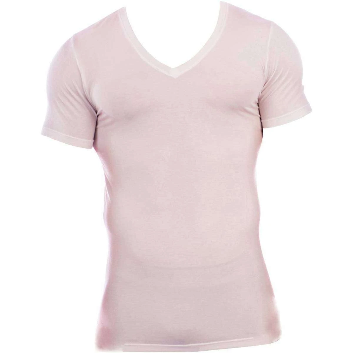 Keeping you cool in the summer and warm in the winter, Obviouslys Essence deep v-neck short sleeved undershirt is ideal for everyday wear. Crafted from a lenzing micro modal and lycra blend this garment is hypoallergenic, anti-bacterial, anti-fungal, sweat absorbent and eco friendly and the custom 4-way stretch fabric allows just the right amount of stretch for maximum comfort. This fine undershirt will not fade, shrink or lose its shape; you couldnt ask for a more quality t-shirt. You can be sure it wont be seen under any clothing as it features flat seams, shorter fitted sleeves and a deep v-neck cut and due to being a longer cut in the body it will slip into any jeans or trousers and will not ride up. Reduce irritation and itchiness as the care label has been printed on and it has been designed with soft flat stitching. A great garment to be worn as an undershirt or as a stylish t-shirt, this Essence deep v-neck short sleeve undershirt by Obviously is sure to impress.