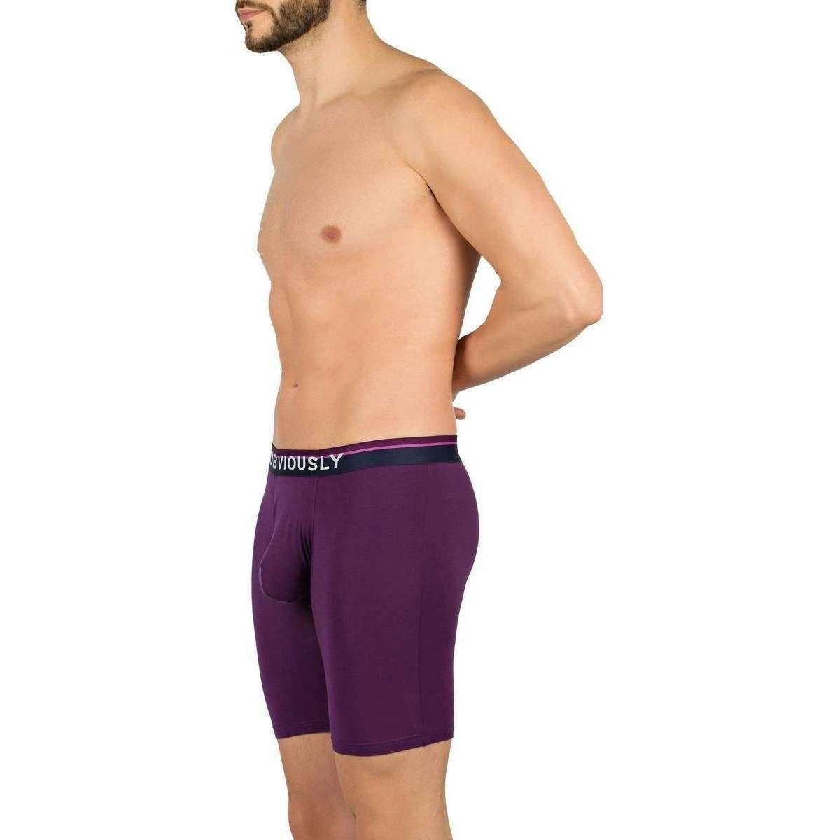 This men’s primeman anatomax boxer brief 6inch leg by the brand Obviously is made from 90% micro modal and 10% lycra and is showcased in purple. Also the purple underwear is designed in a plain pattern, It is recommended to wash on a cold, gentle machine wash at 30 degrees to keep this underwear in good condition. All the underwear comes complete in obviously packaging. The Obviously PrimeMan AnatoMAX Boxer Brief 6inch Leg – Purple has been expertly crafted with light and eco-friendly materials that provide the ideal amount of support. Designed with a smart 4-way stretch that moves with the body, this exceptional product minimises chafing and has the care label printed onto the inside to prevent irritation. A valuable addition to any gentleman’s underwear drawer.