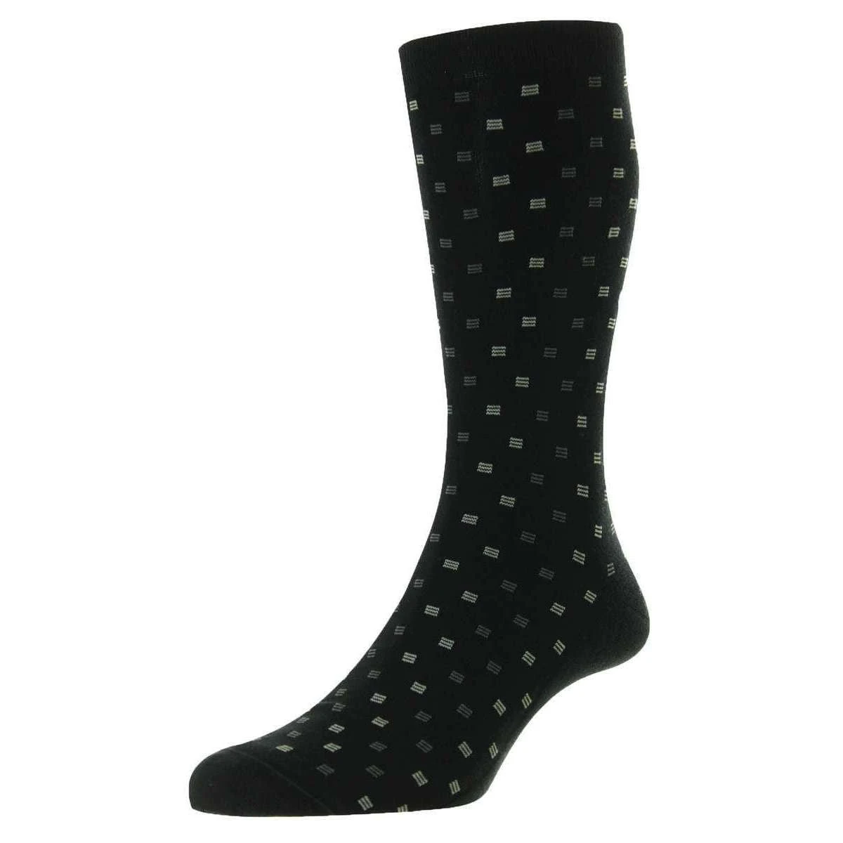 Designer Pantherella have brought you these men’s 72% egyptian cotton and 28% nylon socks using black tones. Also the black socks are designed in a polka dot pattern, Pantherella have made these byrd egyptian cotton socks in Britain. It is recommended to wash at 40 degrees to keep these socks in good condition. All the socks come complete with pantherella packaging. The Pantherella Byrd Egyptian Cotton Socks – Black have been beautifully made form Egyptian cotton to provide excellent comfort, softness and grip. These socks also have a soft grip comfort top to assist with blood circulation and to prevent tightness and marking from the cuff. They have been excellently finished with seamless toes and a cushioned sole making them the perfect everyday pair.