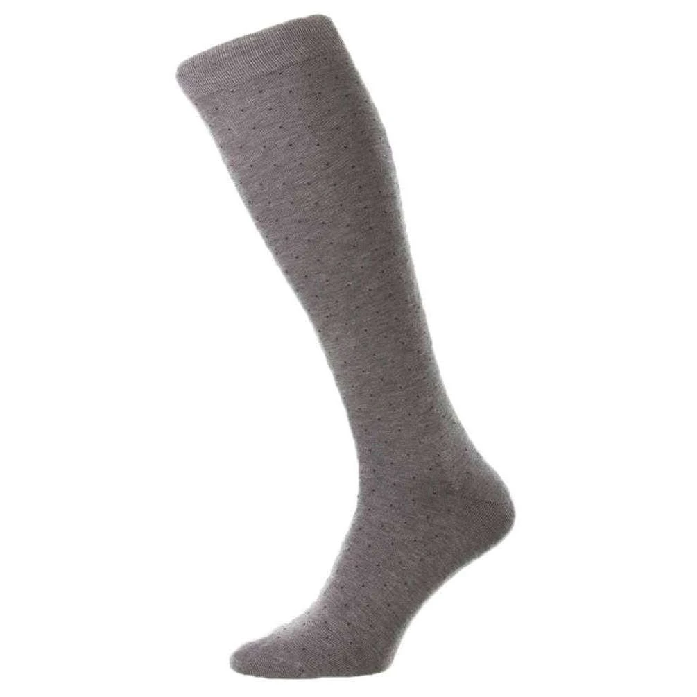 These gadsbury cotton fil d’ecosse over the calf socks for men are fashioned by the brand Pantherella in a grey colour and are made from 70% cotton fil d’ecosse and 30% nylon. Also the mid grey mix socks are designed in a pin dot pattern, Pantherella have made these gadsbury cotton fil d’ecosse over the calf socks in Britain. It is recommended to wash at 40 degrees to keep these socks in good condition. All the socks come complete with pantherella packaging. The Pantherella Gadsbury Cotton Fil D’Ecosse Over the Calf Socks – Mid Grey Mix are made from the highest quality Fil D’Ecosse possible to give them incredible durability and comfort. With its chic pin dot styling this sock is guaranteed to have passers by looking twice, not only for its design but also the seamless toe and hand finished quality. The premium yarn used ensures they have a silky, shiny finish.