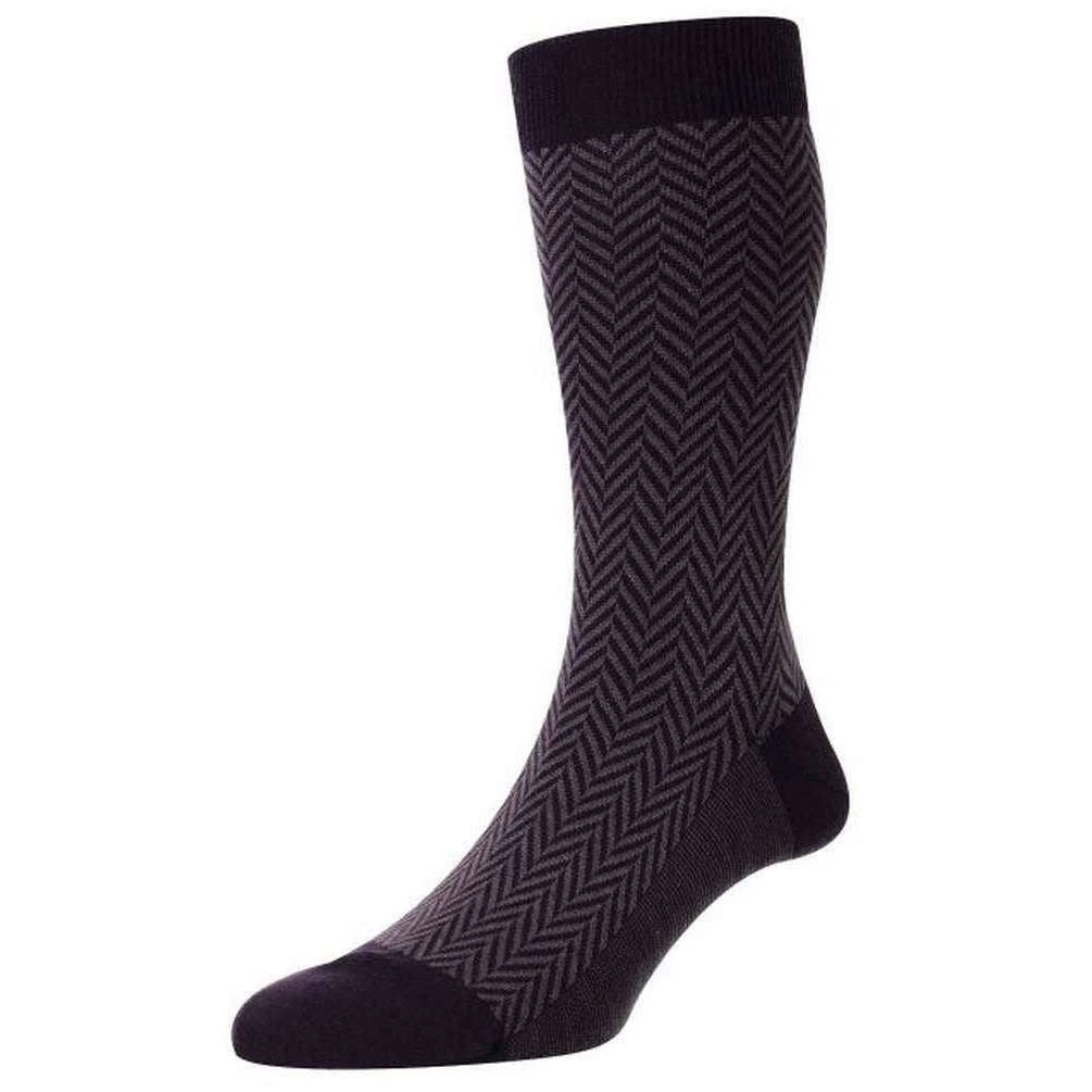 These well made men’s hendon chunky herringbone merino wool socks from Pantherella come in a blackberry purple colour and are manufactured from 70% merino wool and 30% nylon. Also the blackberry purple socks are designed in a herringbone pattern, Pantherella have made these hendon chunky herringbone merino wool socks in Britain. It is recommended to hand wash only, do not iron, do not bleach, do not tumble dry, do not dry clean to keep these socks in good condition. All the socks come complete with pantherella packaging. The Pantherella Hendon Chunky Herringbone Merino Wool Socks – Blackberry Purple have the iconic chunky herringbone classic Pantherella design that creates a timeless style. Featuring the signature seamless toe for extreme comfort these classic Hendon socks are sure to be a new favourite of yours.