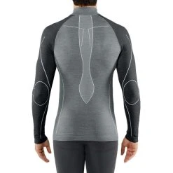 Falke Wool Tech Long Sleeved Zipped Shirt – Black Grey Melange