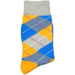 Bassin And Brown Argyle Multi Check Socks – Purple/Yellow/Green/Blue/Sky/Red