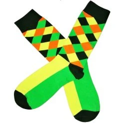 Bassin And Brown Diamond Check Socks – Green/Yellow/Khaki/Orange