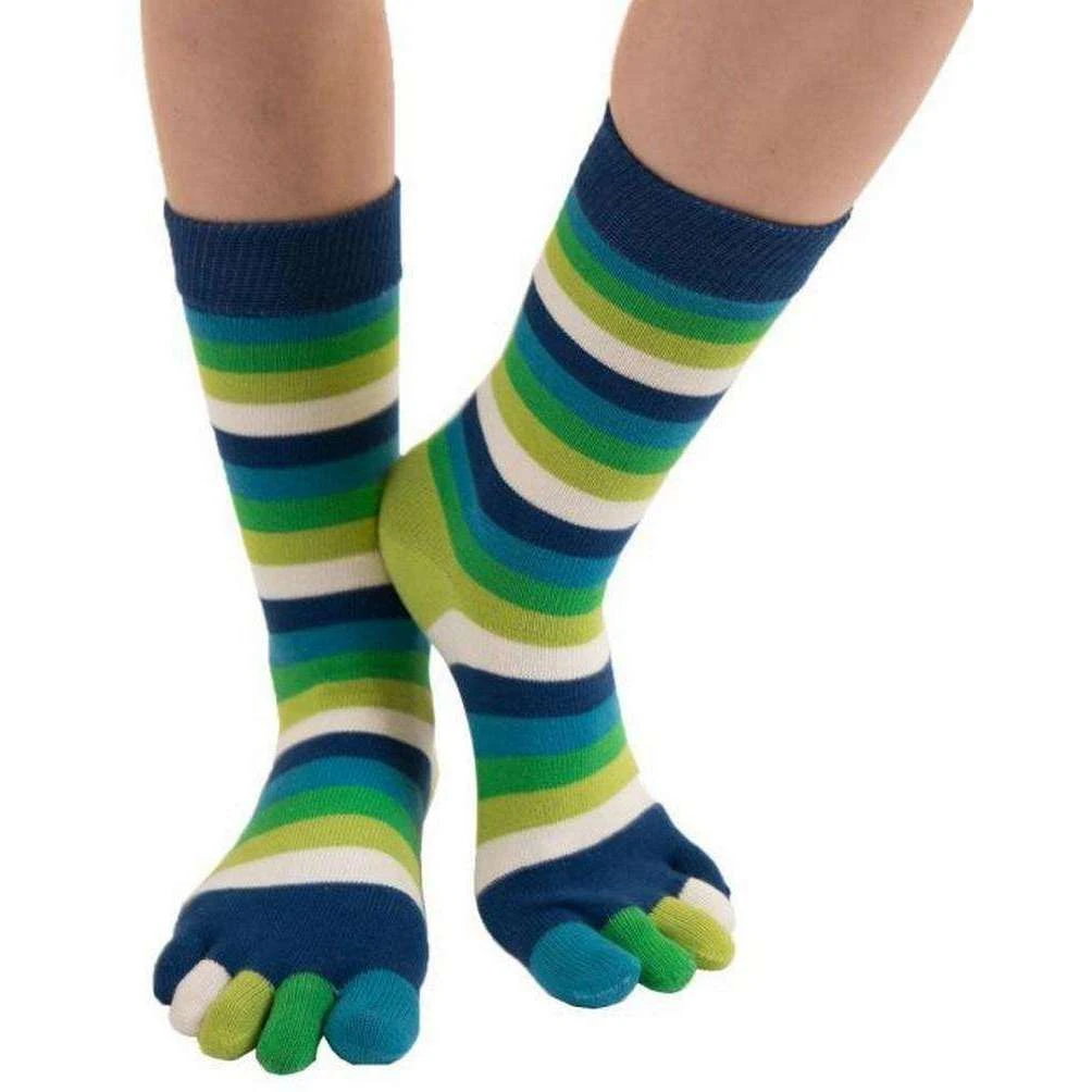 These unisex essential striped mid calf socks by the brand TOETOE are made from 90% cotton and 10% elastane and are showcased in green. Also the pond green socks are designed in a striped pattern, It is recommended to wash at 30 degrees to keep these socks in good condition. All the socks come complete with toetoe sock tags. The TOETOE Essential Striped Mid Calf Socks – Pond Green have seamless knitting technology that provides a gentle hold without restriction and helps prevent blisters as there is no friction between the toes. Maintains constant blood circulation and provides optimum warmth in the toes, encourages toe exercise that keeps them in their natural shape. Also promotes better hygiene preventing bad smells and athletes foot.
